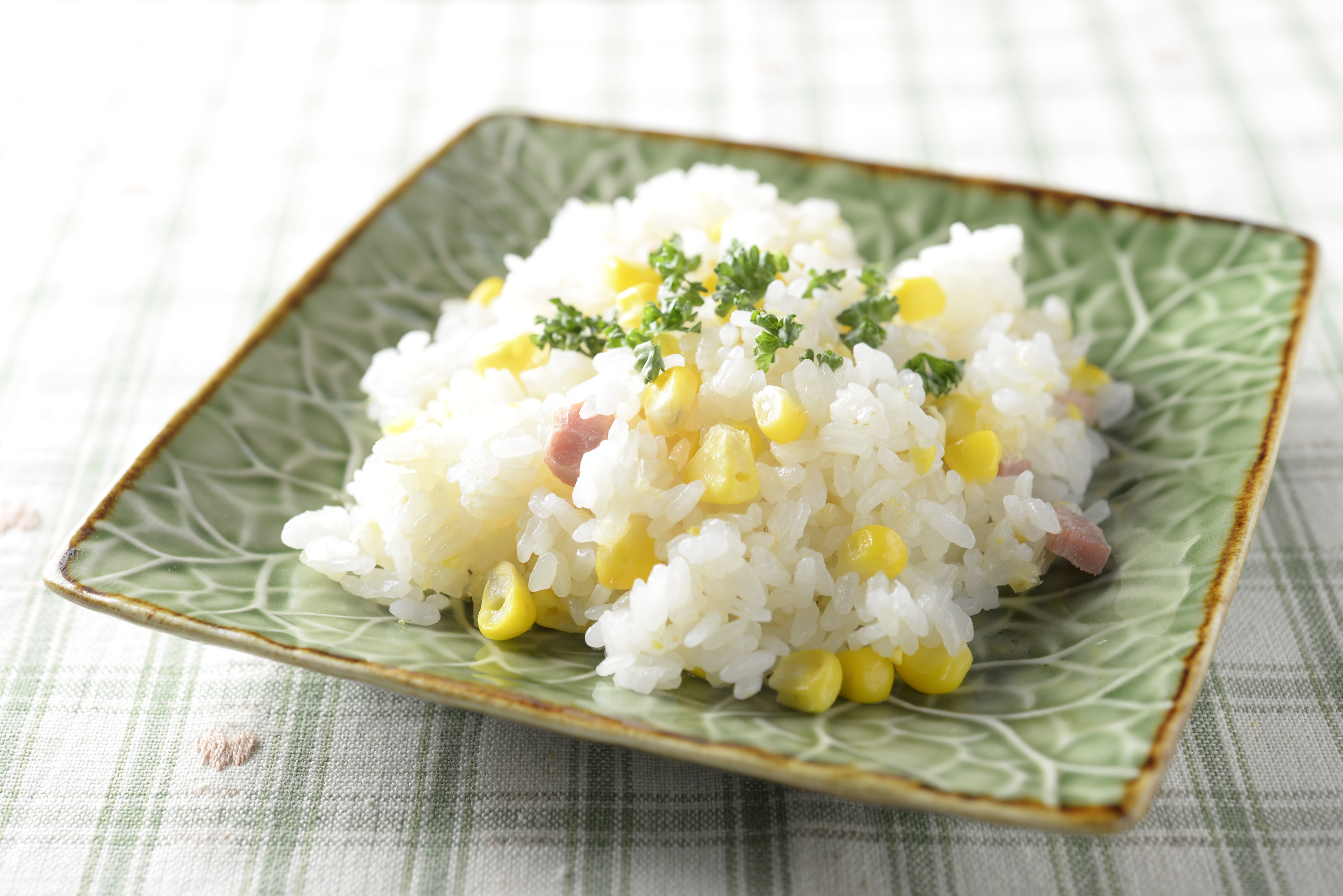 炊飯器に塩、バターを入れ、上にベーコン、とうもろこしをのせて、普通に炊く。