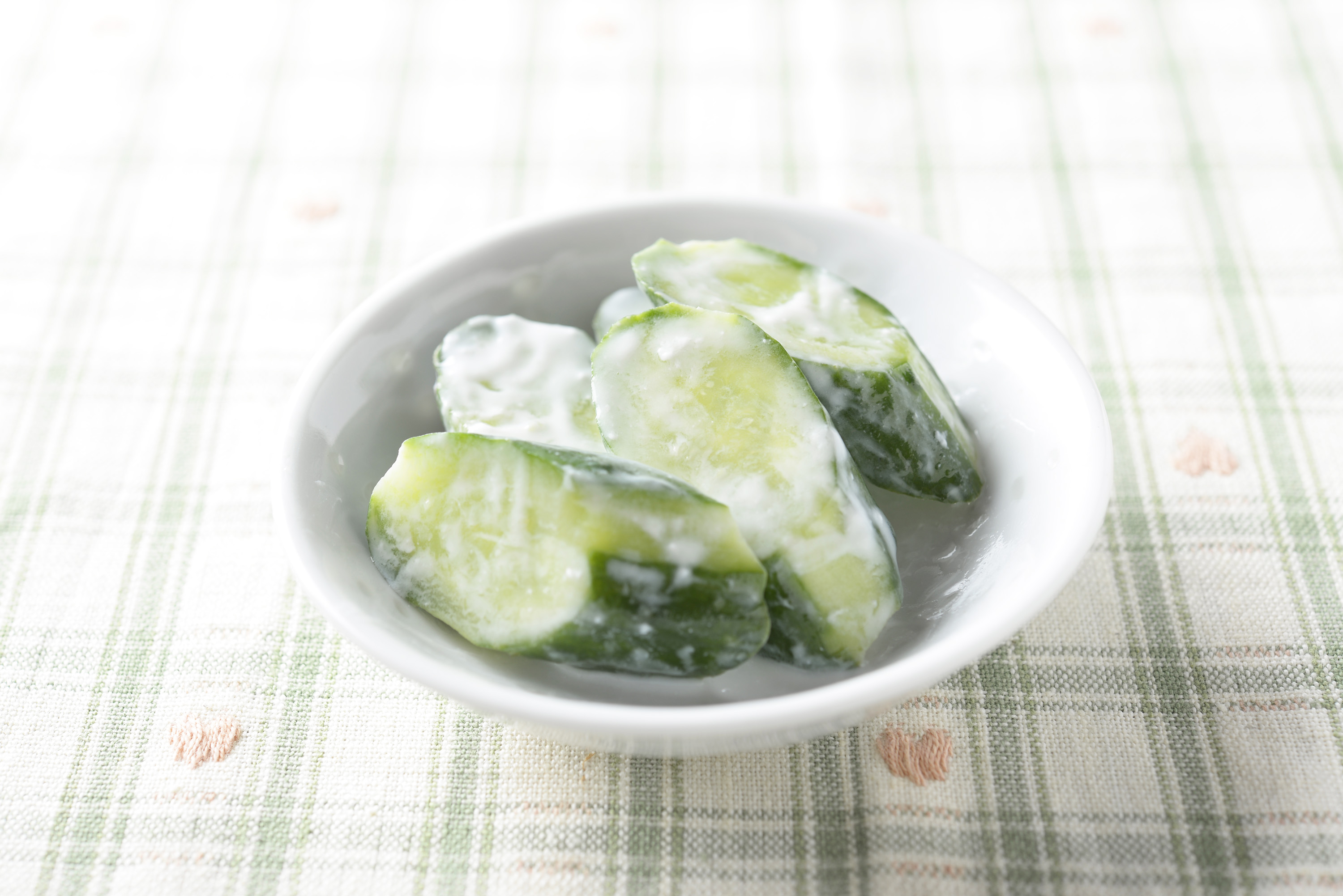 ヨーグルトは甘くしたり、デザート感覚で食べることが多いですが、これはヨーグルトの乳酸菌を生かして作る簡単な浅漬けで、漬物が苦手な子供でも喜んでくれました。漬物や和え物などは油を使わない日本のサラダで、野菜をたっぷり食べられます。日本の大切な食文化ですね。